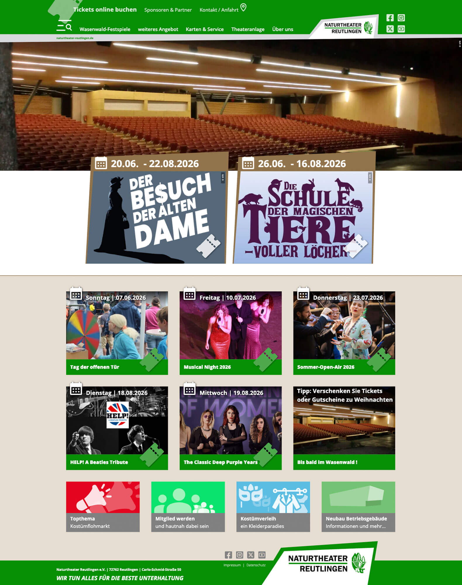 Bühne frei für einen neuen Webauftritt! Das Naturtheater Reutlingen ist jetzt digital neu inszeniert, mit einem Design, das die markante Form des Theaters aufgreift und den einzigartigen Charakter des Hauses spürbar macht.